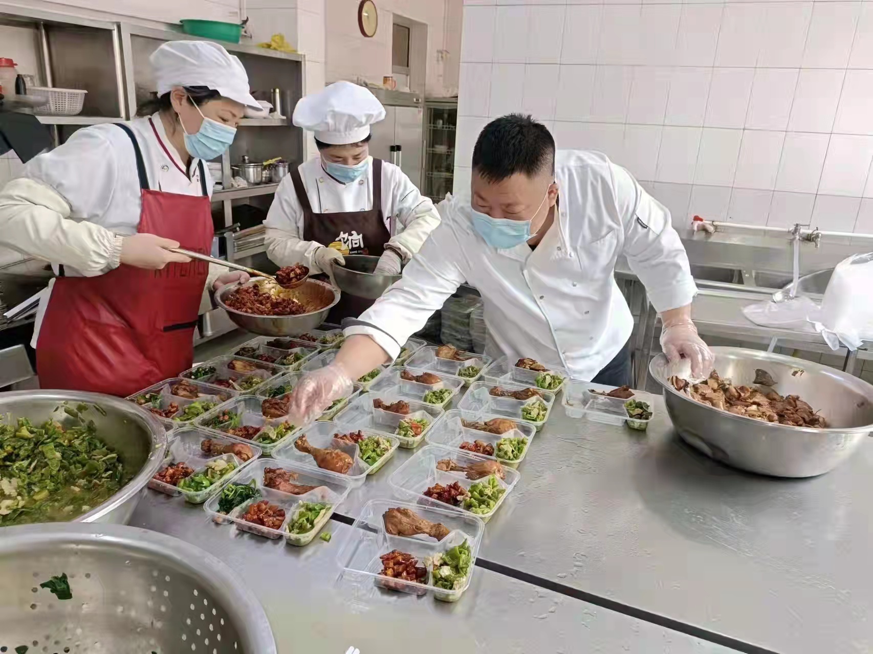 食堂班長蔣玉斌說,“大家都在一線奮斗著,我們也不能放松,要用最擅長的方式為抗擊疫情做力所能及的事?!痹谒膸ьI(lǐng)下,食堂班有需要照顧92歲高齡老父親依然堅持在崗的董玥同志,有將幼小的孩子交給年邁的父母照看的王迎華同志,還有自身傷病卻依舊堅守崗位的于銳同志,他們每天24小時不離崗,舍小家顧大家,在保障基層一線職工營養(yǎng)均衡、葷素搭配、水果酸奶充足供應(yīng)的基礎(chǔ)上及時調(diào)整菜譜,默默用實際行動為疫情防控工作貢獻自身力量。