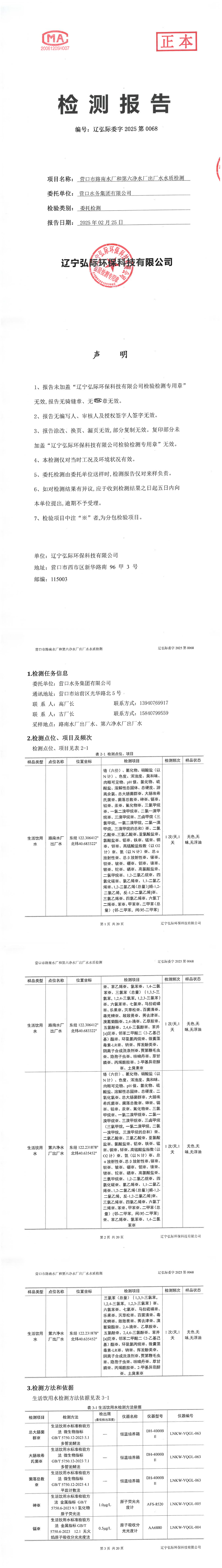 水質(zhì)報告