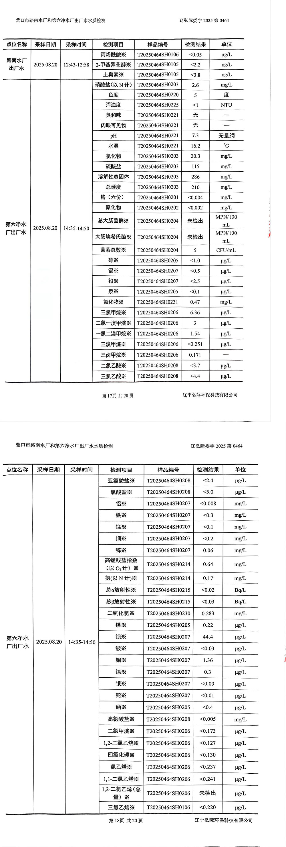 2025年3季度水質(zhì)公示報(bào)告