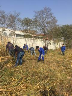 第五水廠是水務(wù)集團(tuán)較大的水廠之一,主要承擔(dān)西部工業(yè)水的運(yùn)行輸送工作。因地形特殊,清水池綠化帶、林木周邊、防護(hù)電網(wǎng)等許多位置不適合機(jī)械除草,約有4萬(wàn)平方米的雜草需人工處理。10月14日下午13時(shí),水務(wù)集團(tuán)全體班子成員和來(lái)自機(jī)關(guān)部室、基層單位的240余名男職工戴著手套、拿著鐮刀,迅速地投入到事先分配好的20個(gè)勞動(dòng)區(qū)域中開(kāi)展勞動(dòng)。水廠院內(nèi)地上的雜草以蘆葦和蒿草為主,足有一人多高,已被秋風(fēng)吹得干枯發(fā)黃,不易清除。領(lǐng)導(dǎo)班子成員身先士卒,帶頭示范,鼓舞了志愿者們的志氣,許多志愿者的手上都磨出了水泡或被雜草劃傷,但是大家毫無(wú)怨言,發(fā)揚(yáng)特別能吃苦、特別能戰(zhàn)斗的精神,忍痛堅(jiān)持到了最后。經(jīng)過(guò)全體志愿者的共同努力,經(jīng)過(guò)4小時(shí)連續(xù)奮戰(zhàn),4萬(wàn)平方米的雜草全面清除干凈,同時(shí)對(duì)雜草中的白色垃圾進(jìn)行了集中清理,廠區(qū)環(huán)境衛(wèi)生得到了明顯改善??粗鍧嵭l(wèi)生的水廠,志愿者們的心里洋溢著自豪感和成就感,同時(shí)也享受到了勞動(dòng)的光榮與快樂(lè)。