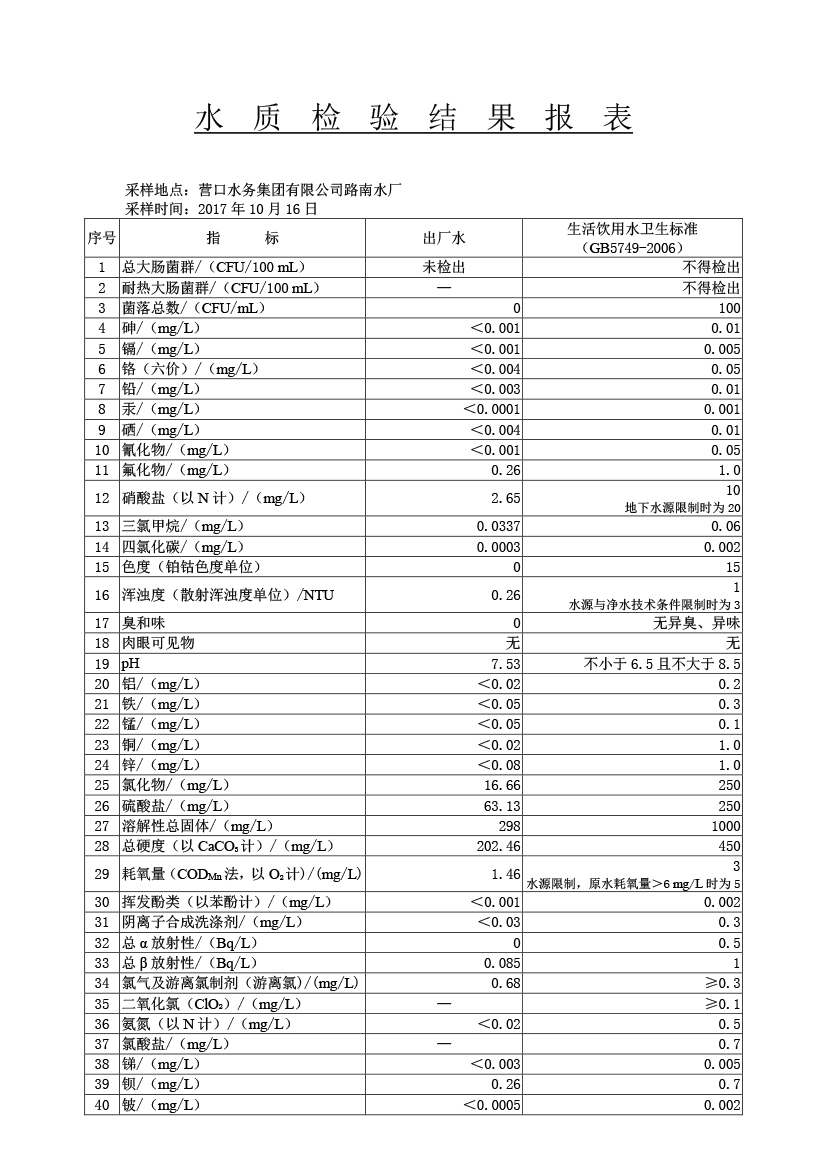 水質(zhì)報(bào)告
